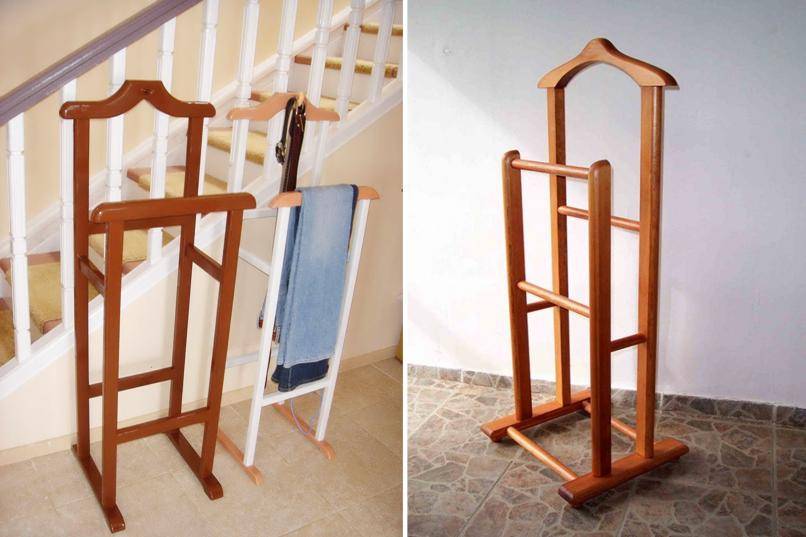 - Если рассмотренную конструкцию дополнить полочкой внизу, получится дополнительное место для обуви. Вешалка-стул чаще используется в гостиничных номерах.