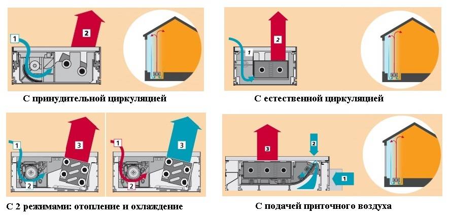 Нагрев теплообменника запускает процесс свободной конвекции, которая при необходимости ускоряется вентиляторами.