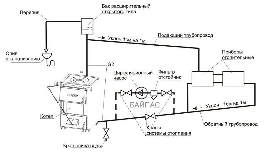 Схема закрытой двухтрубной системы отопления двухэтажного дома с принудительной циркуляцией