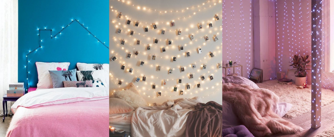 Вариант для расслабленных романтичных интерьеров — гирлянды. Чтобы не возникло ощущение «Новый год круглый год», выбирайте гирлянды с однотонными лампочками. Эффектно, бюджетно, просто.