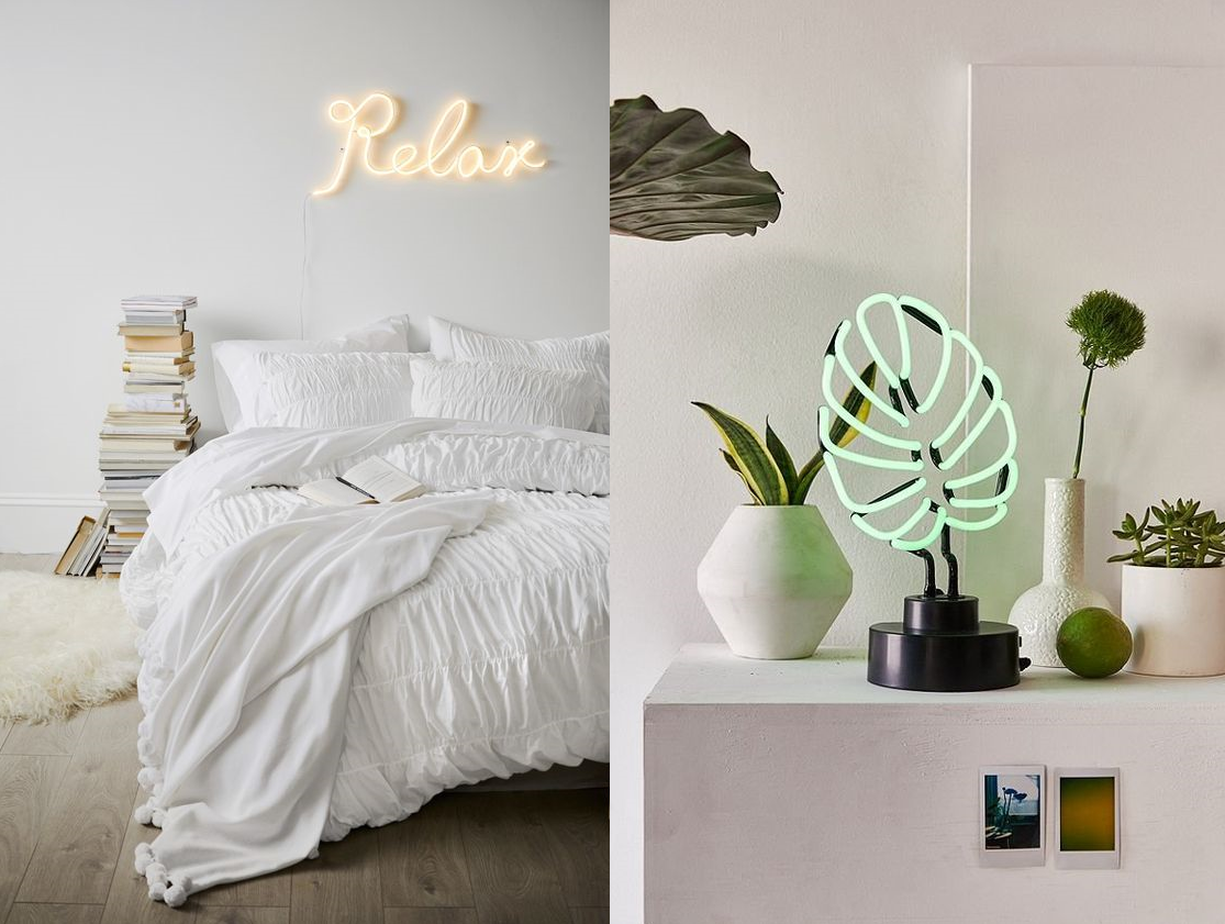 Поднять интерьеру настроение и создать особую атмосферу можно с помощью цвета света. Вау-эффекта тут можно добиться малыми средствами, с задачей справится всего один неоновый светильник, настенный или мобильный.