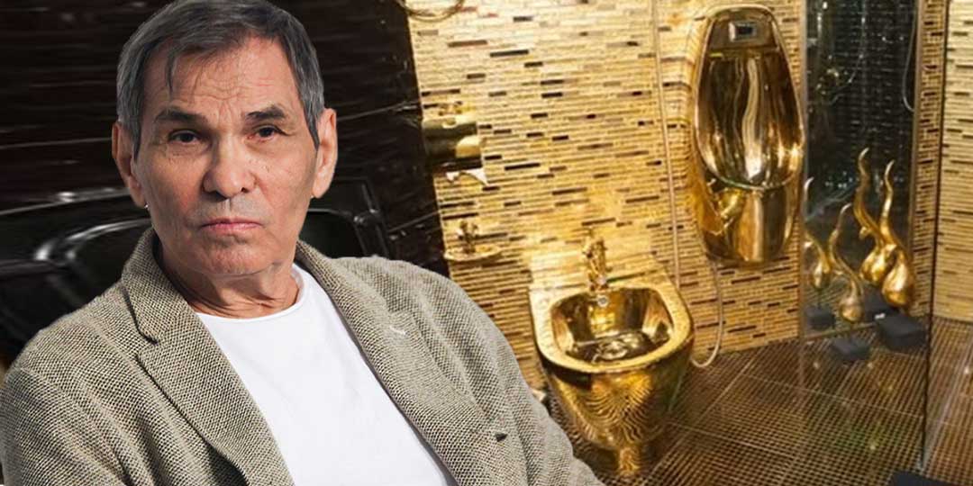 В доме Алибасова только 2 санузла, но в одном из них установлена золотая сантехника: унитаз, биде и раковина. Они соседствуют с принадлежностями и безделушками, покрытыми позолотой.